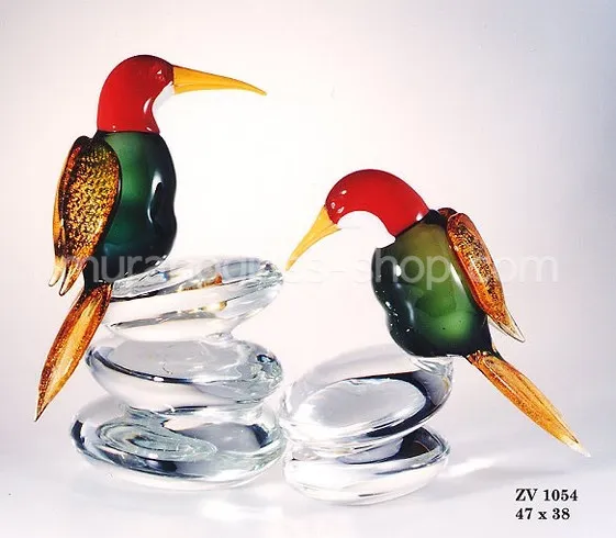 Uccelli decorati oro su base a forma di ciotoli in cristallo